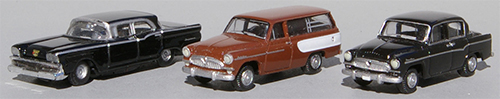 From left to right: Classic Metal Works Ford Fairlane, TomyTec Toyopet 2-door wagon and Toyopet 4-door Crown