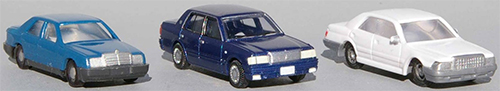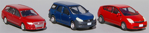 From left to right: Wiking VW Passat, TomyTec Nissan AD and TomyTec Toyota Prius