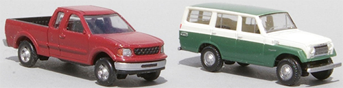 From left to right: Atlas Ford F-150 and TomyTec Toyota Land Cruiser