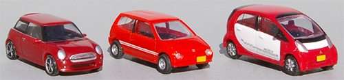 From left to right: Herpa Mini, TomyTec Honda Today and Mitsubishi i-MiEV